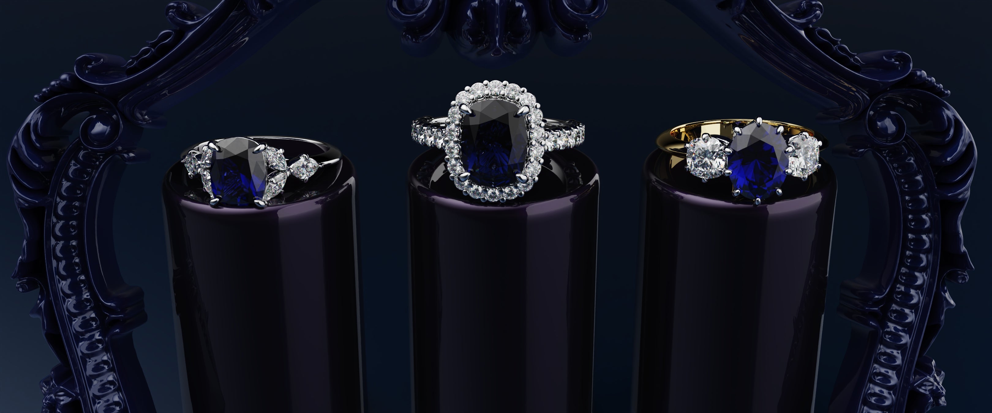 Explore our collection bespoke blue sapphire engagement rings featuring a variety designs, from vintage-inspired settings to contemporary silhouettes. Every ring is meticulously design and crafted in house to at our Hatton Garden Jewllery workshop to reflect your individualand love story.
